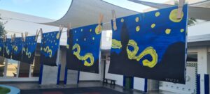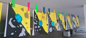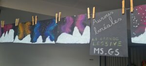 Les parents d’élèves ont été invités à découvrir l’étendage éphémère des productions de nos jeunes artistes sur les traditionnelles cordes à linge, de la maternelle à l’élémentaire.