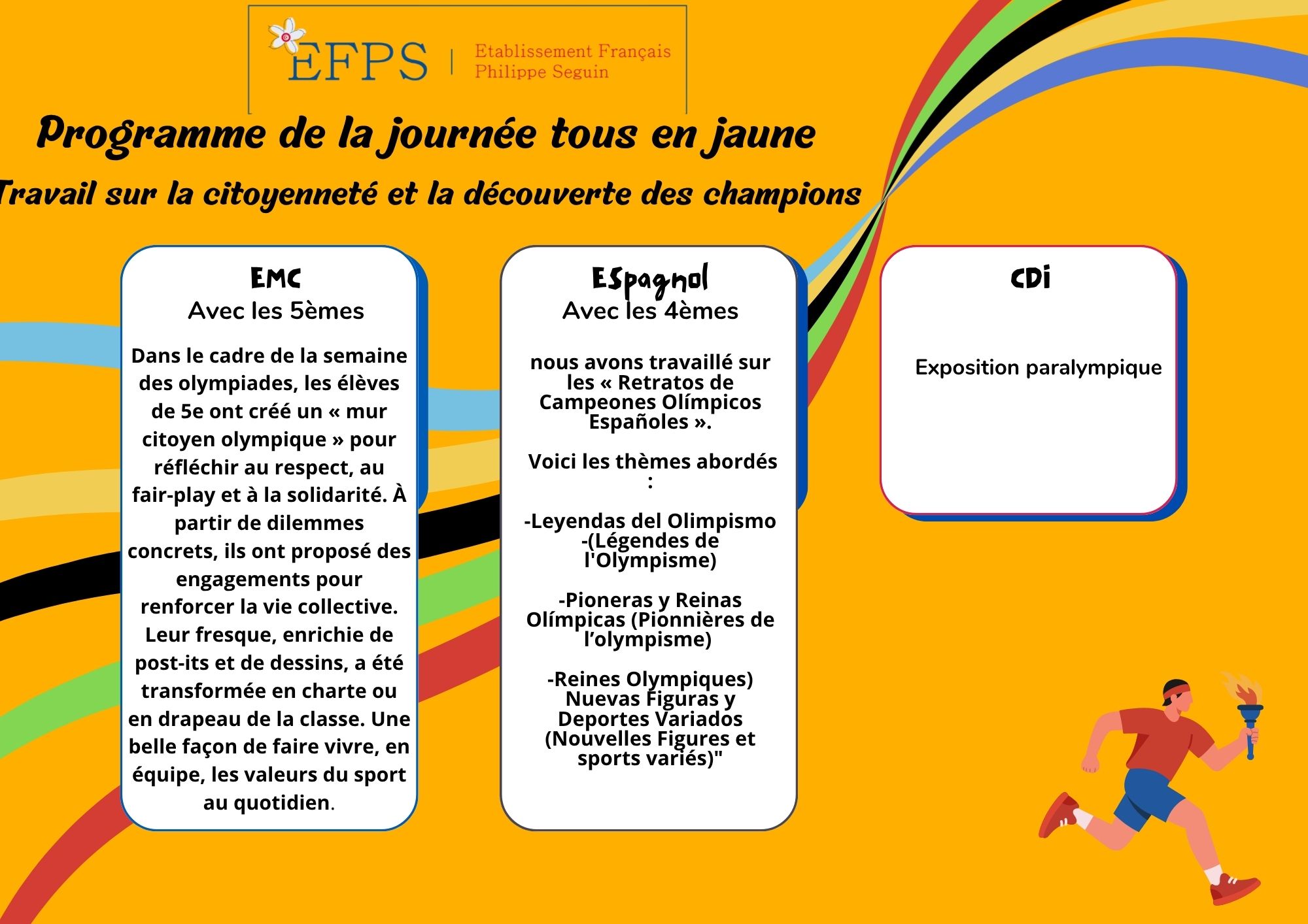 Durant cette journée, nos élèves ont pu découvrir en Espagnol les rois et reines des jeux olympiques.