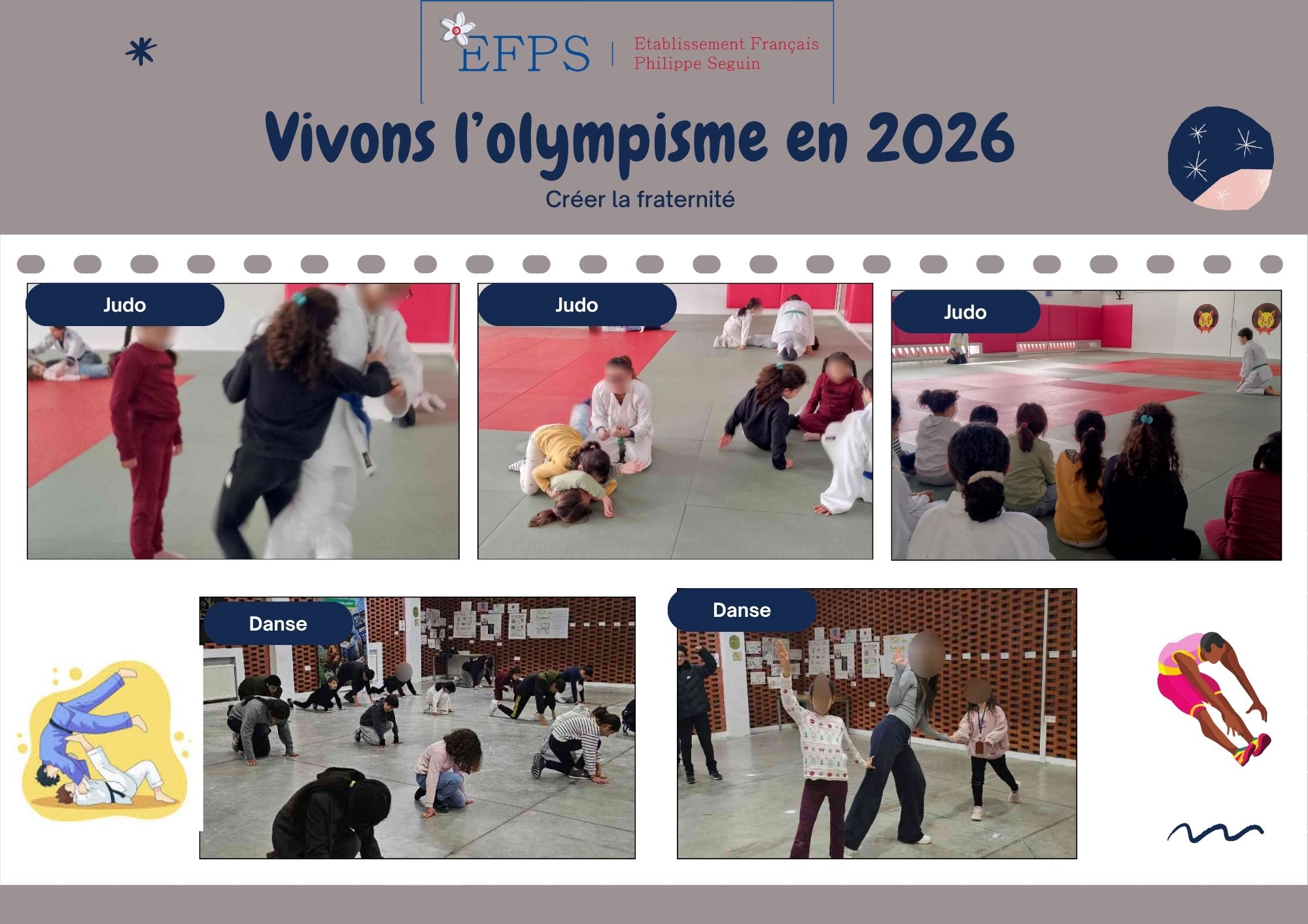 -Danse : partage entre les élèves de la section sportive scolaire judo et les élèves de CE1. C’est aux plus jeune d’apprendre la chorégraphie aux plus grands .